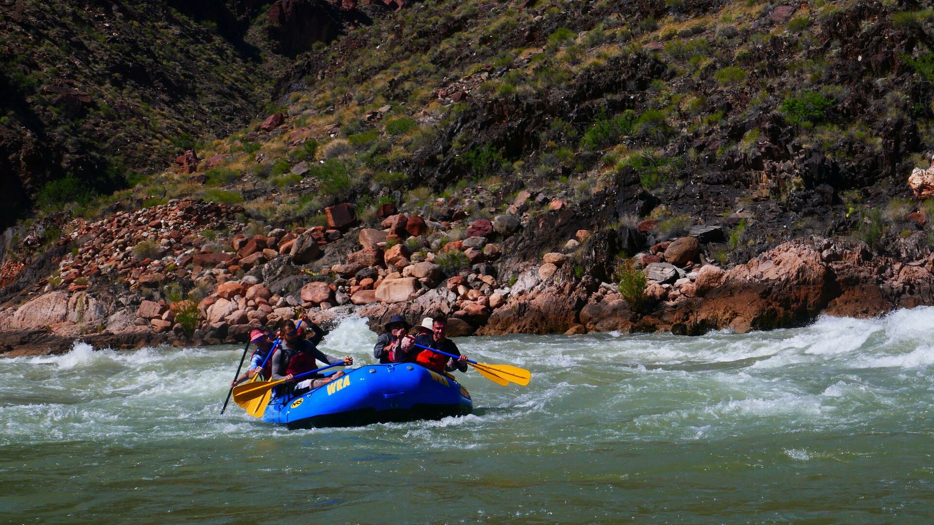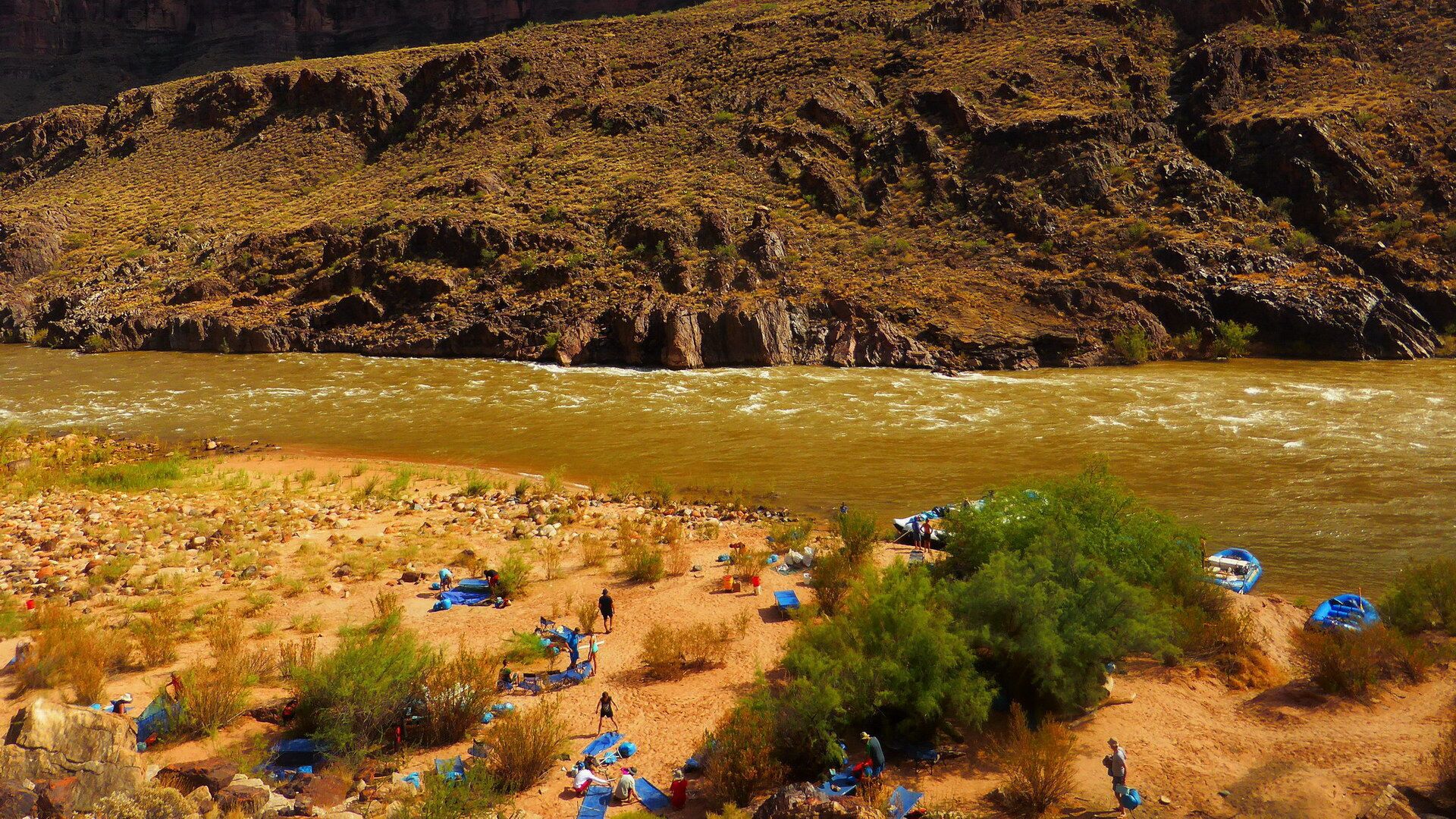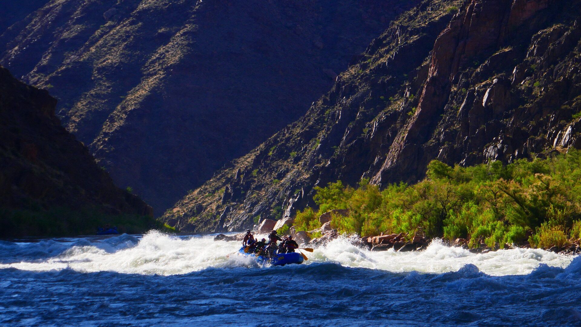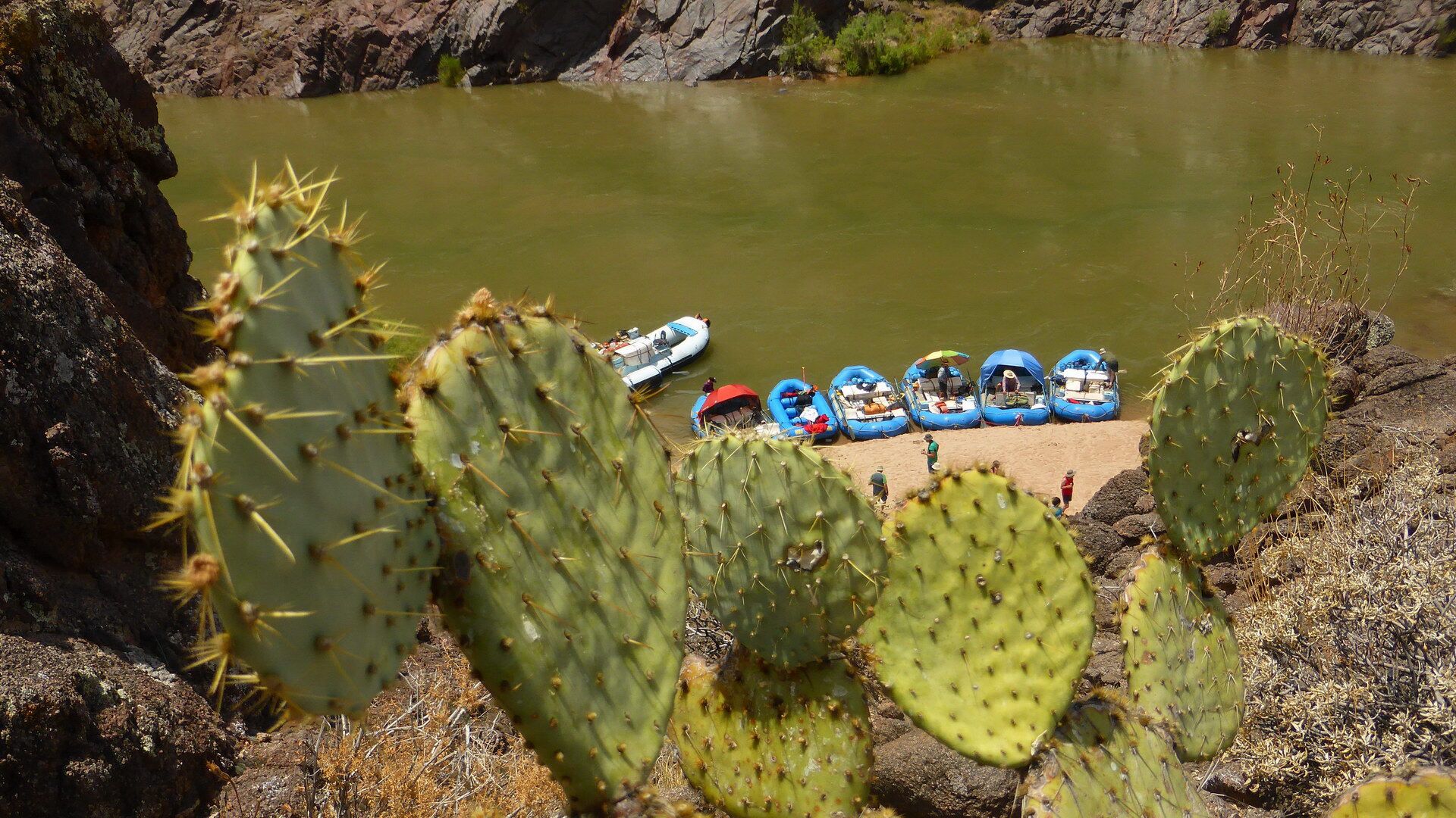 Und jetzt geht's los! Frühmorgens beginnen wir den Abstieg vom South Rim (ca. 2100m) bis hinab zum Colorado River (ca. 800m). Wir lassen uns Zeit und genießen immer wieder die grandiosen Ausblicke. Unten angekommen besteigen wir die Spezial-Schlauchboote, auf denen wir in den nächsten Tagen die grandioseste Schlucht der Welt erleben werden. Neben dem Abenteuer auf dem mal ruhigen, mal turbulenteren Wasser an sich werden wir kleine Wanderungen in geheimnisvolle Seitencanyons zu den Ruinen längst vergangener Indianerkulturen unternehmen, erfrischende Bäder in den kühlen Fluten des Colorado genießen und abends unser Lager auf den weißen Sandbänken in den Tiefen des berühmtesten Canyons der Welt aufschlagen.