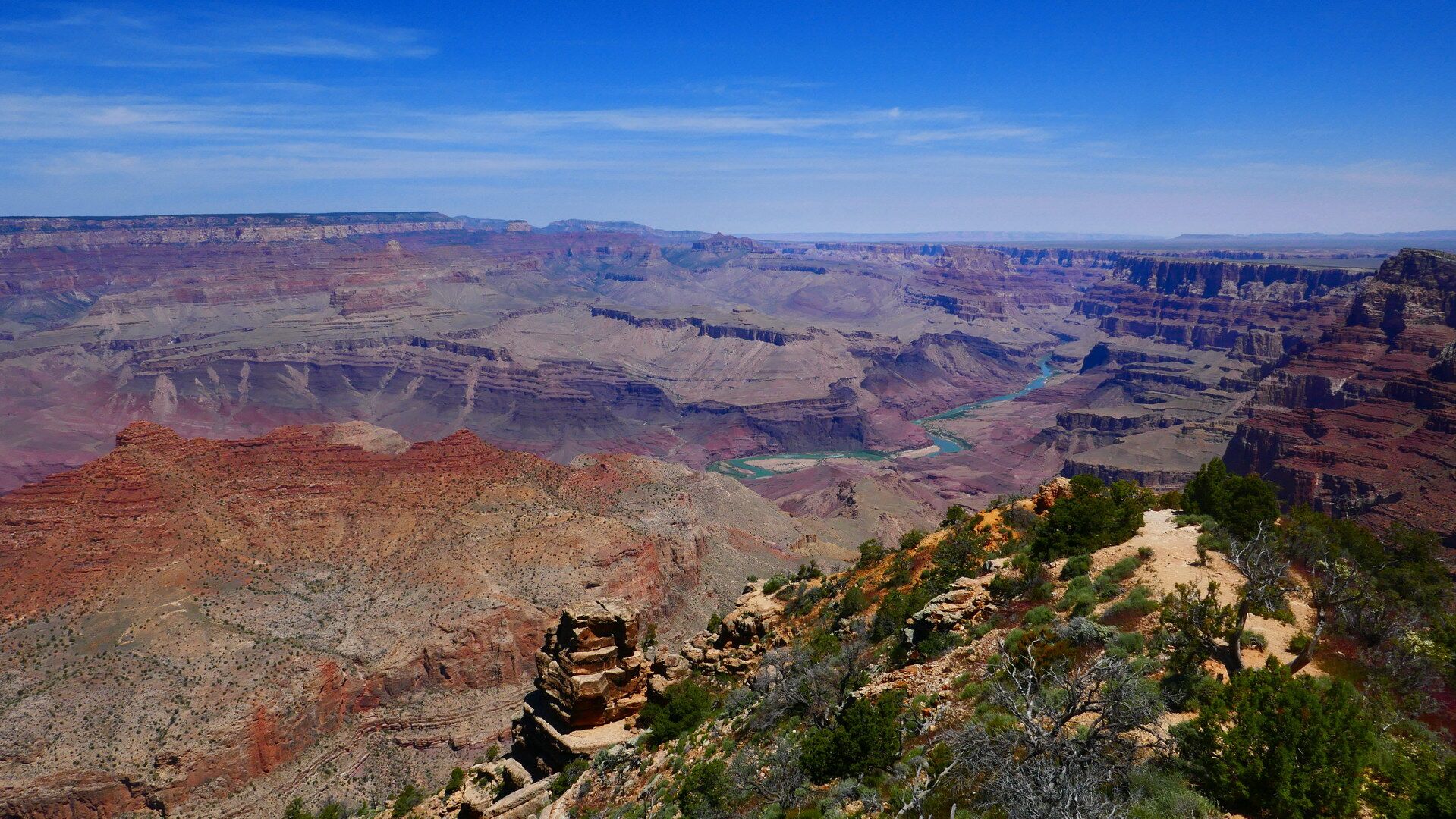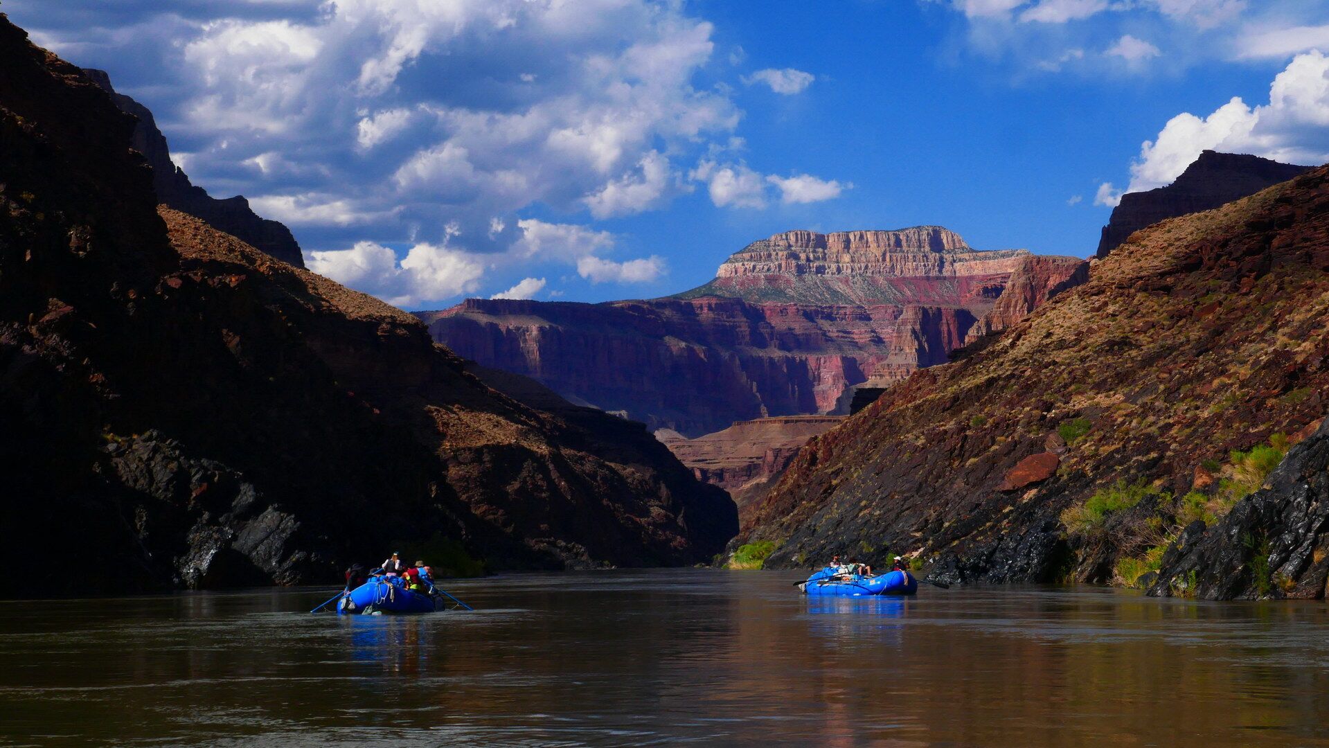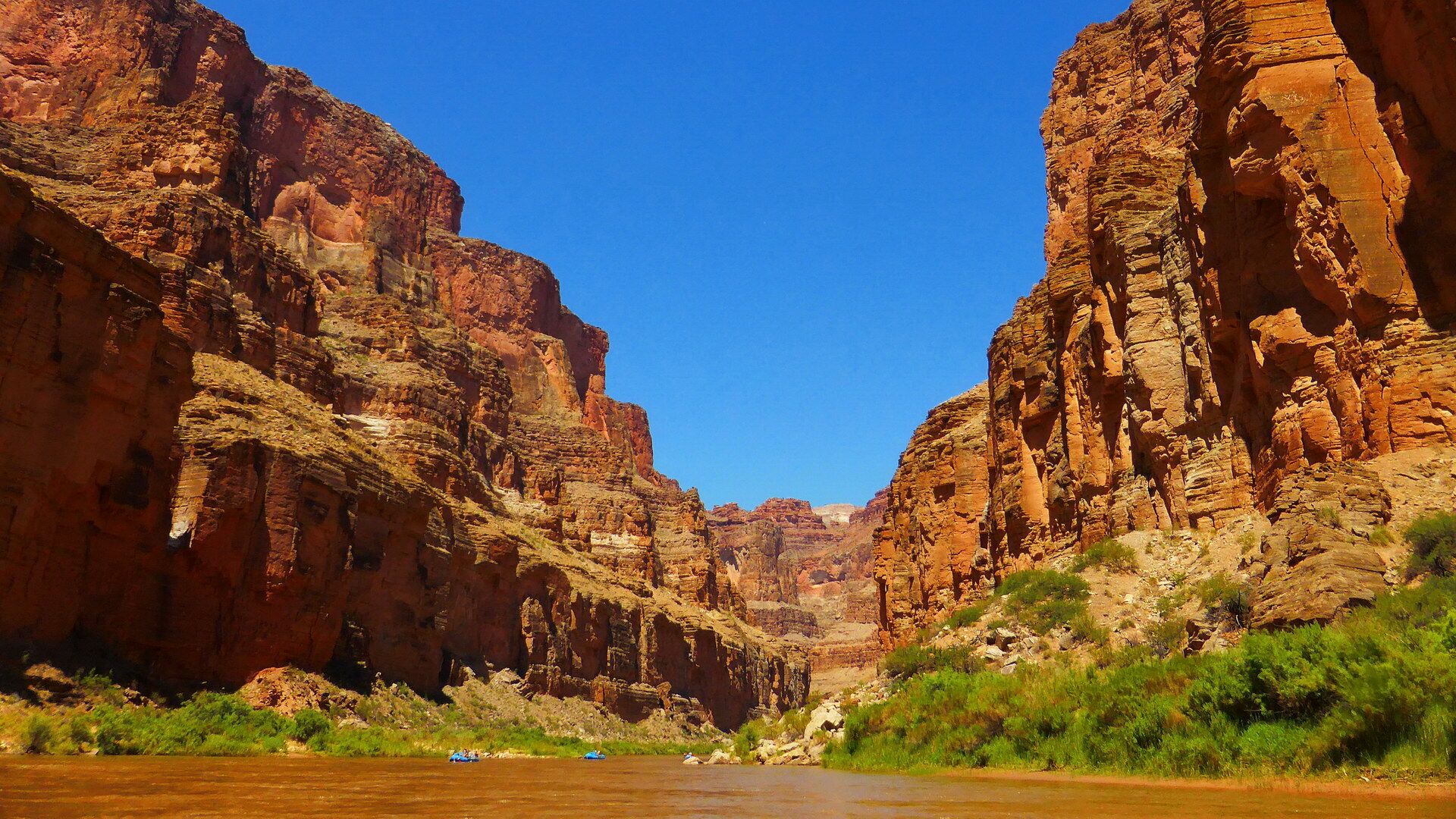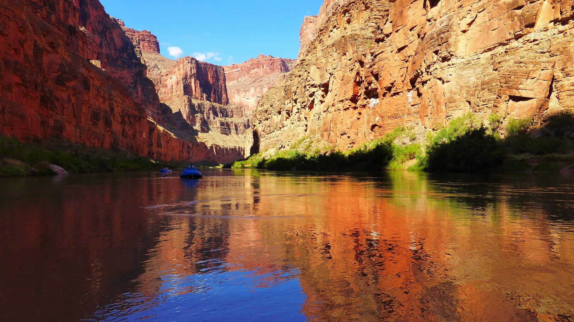 Und jetzt geht's los! Frühmorgens beginnen wir den Abstieg vom South Rim (ca. 2100m) bis hinab zum Colorado River (ca. 800m). Wir lassen uns Zeit und genießen immer wieder die grandiosen Ausblicke. Unten angekommen besteigen wir die Spezial-Schlauchboote, auf denen wir in den nächsten Tagen die grandioseste Schlucht der Welt erleben werden. Neben dem Abenteuer auf dem mal ruhigen, mal turbulenteren Wasser an sich werden wir kleine Wanderungen in geheimnisvolle Seitencanyons zu den Ruinen längst vergangener Indianerkulturen unternehmen, erfrischende Bäder in den kühlen Fluten des Colorado genießen und abends unser Lager auf den weißen Sandbänken in den Tiefen des berühmtesten Canyons der Welt aufschlagen.