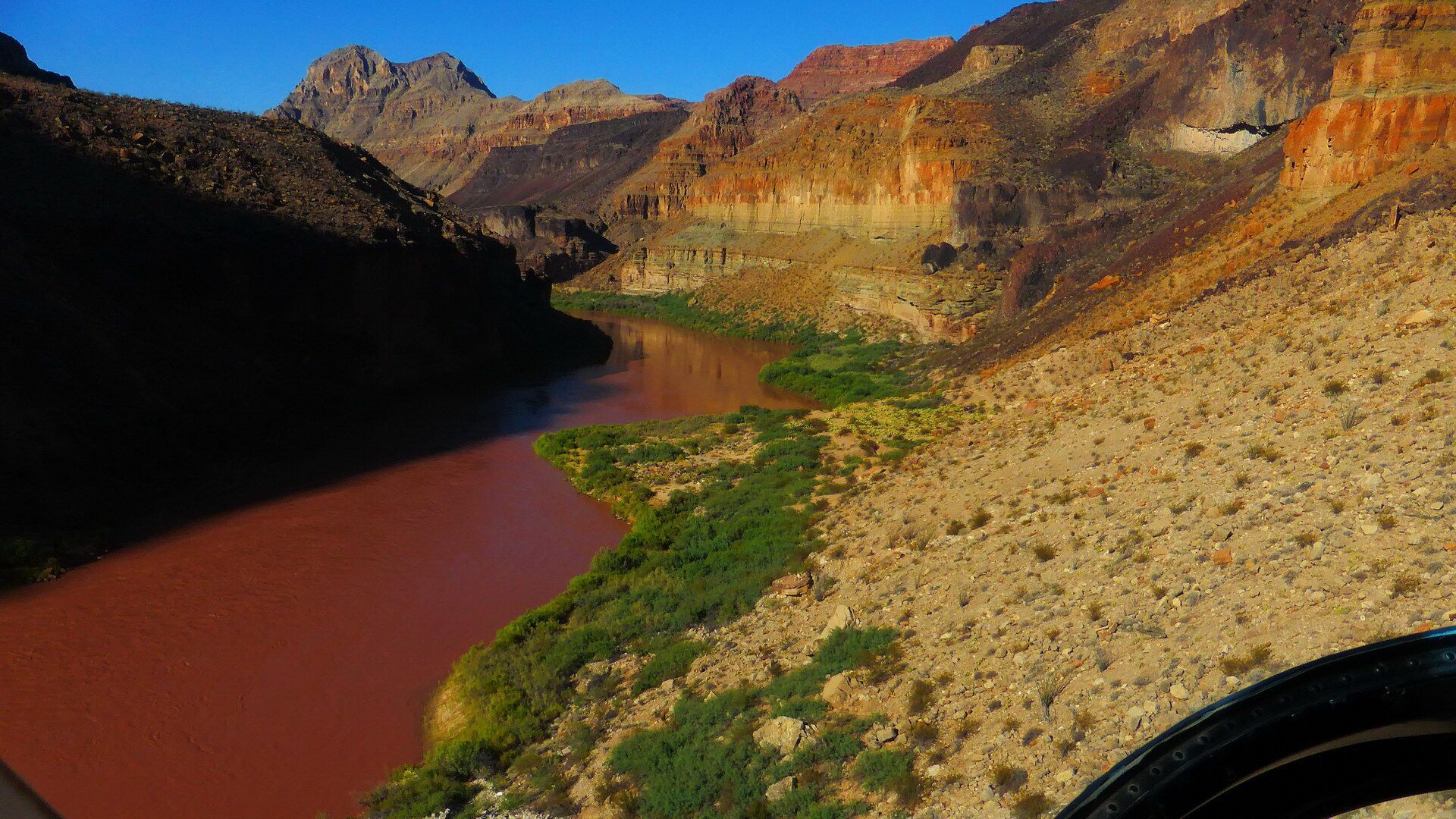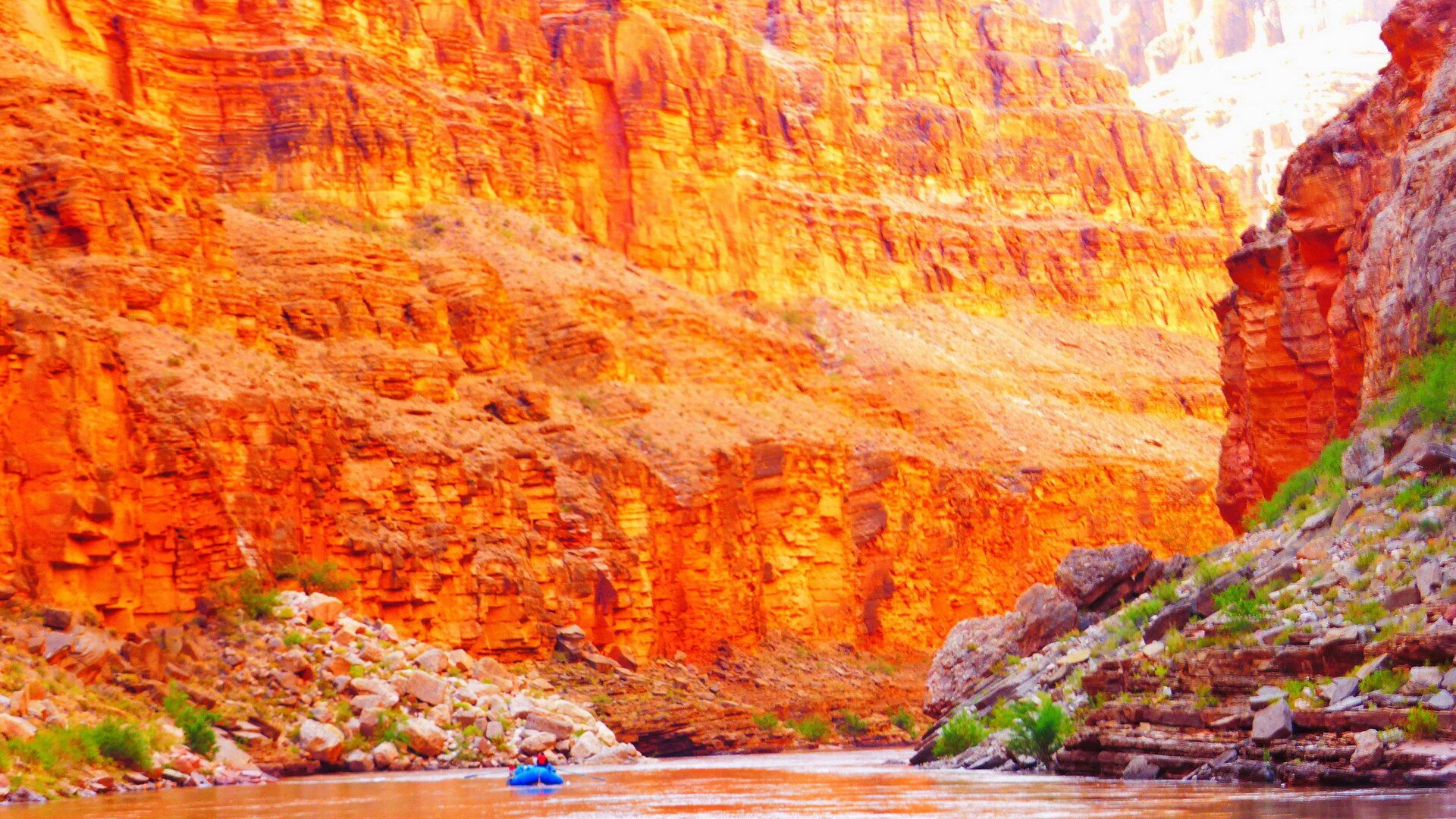 Der Fluss hat uns wieder ... die Sonne lässt den Canyon erstrahlen ...