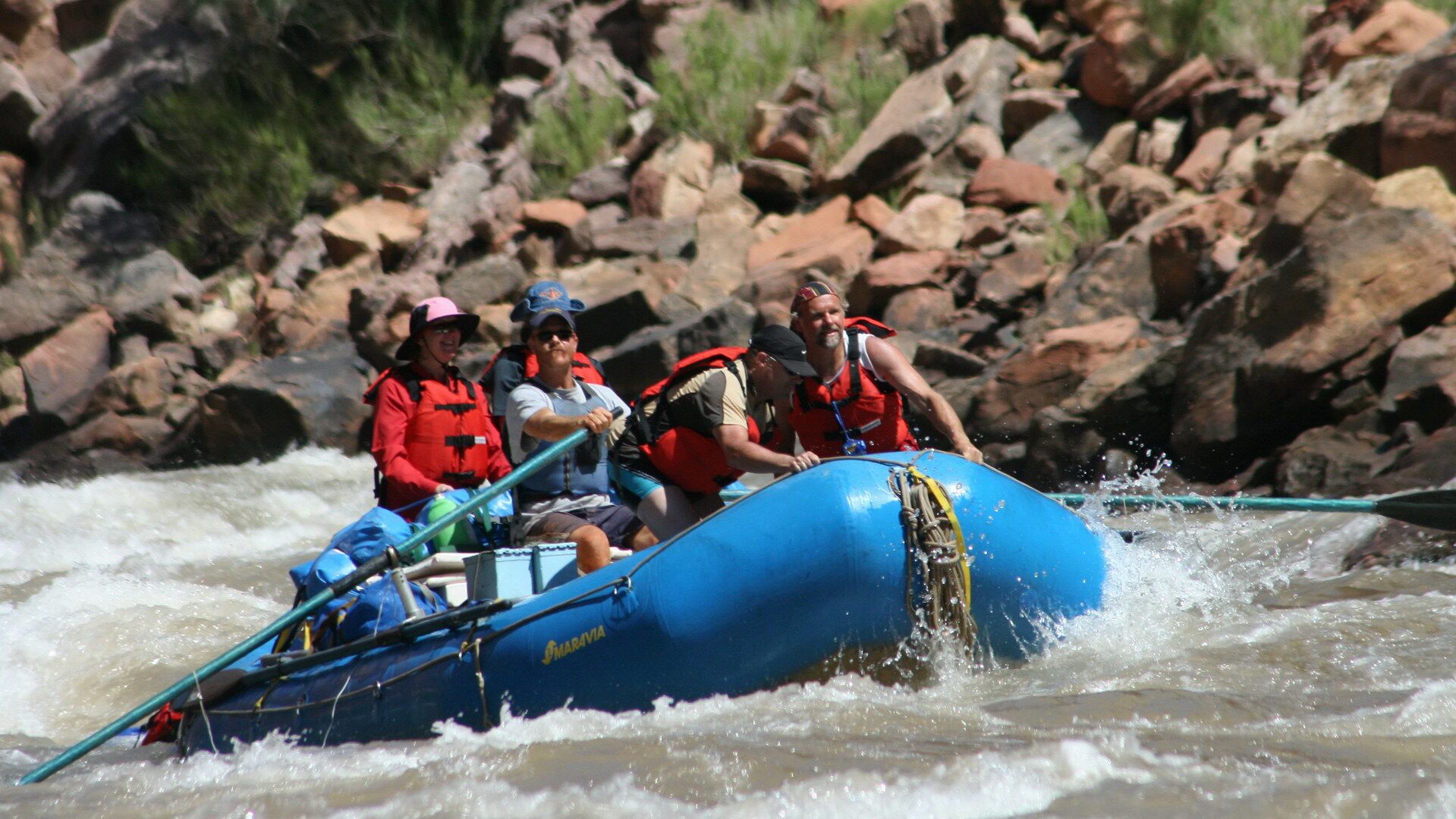 Die Boote werden jeweils von einem Guide gerudert und gelenkt; bis zu 4 Gäste haben Platz in einem dieser Boote. Die Gäste können sich voll und ganz auf die grandiose Szenerie konzentrieren (müssen also nicht selber mitpaddeln). Übernachtet wird an herrlichen Sandstränden entlang des Colorado Flusses (wahlweise im Zelt oder auf der bequemen Matratze einfach im Sand und dabei den traumhaften Sternenhimmel vor Augen).