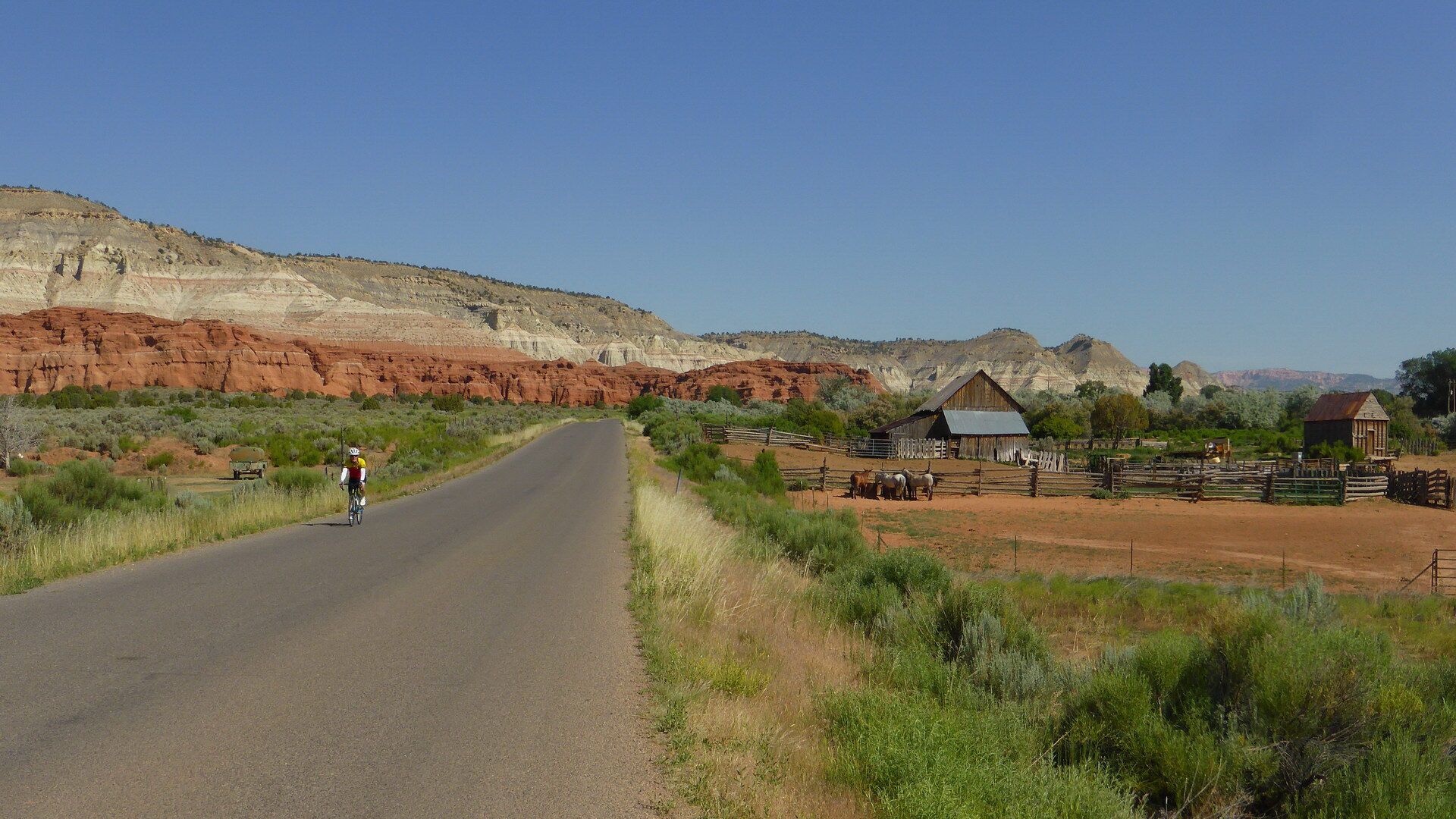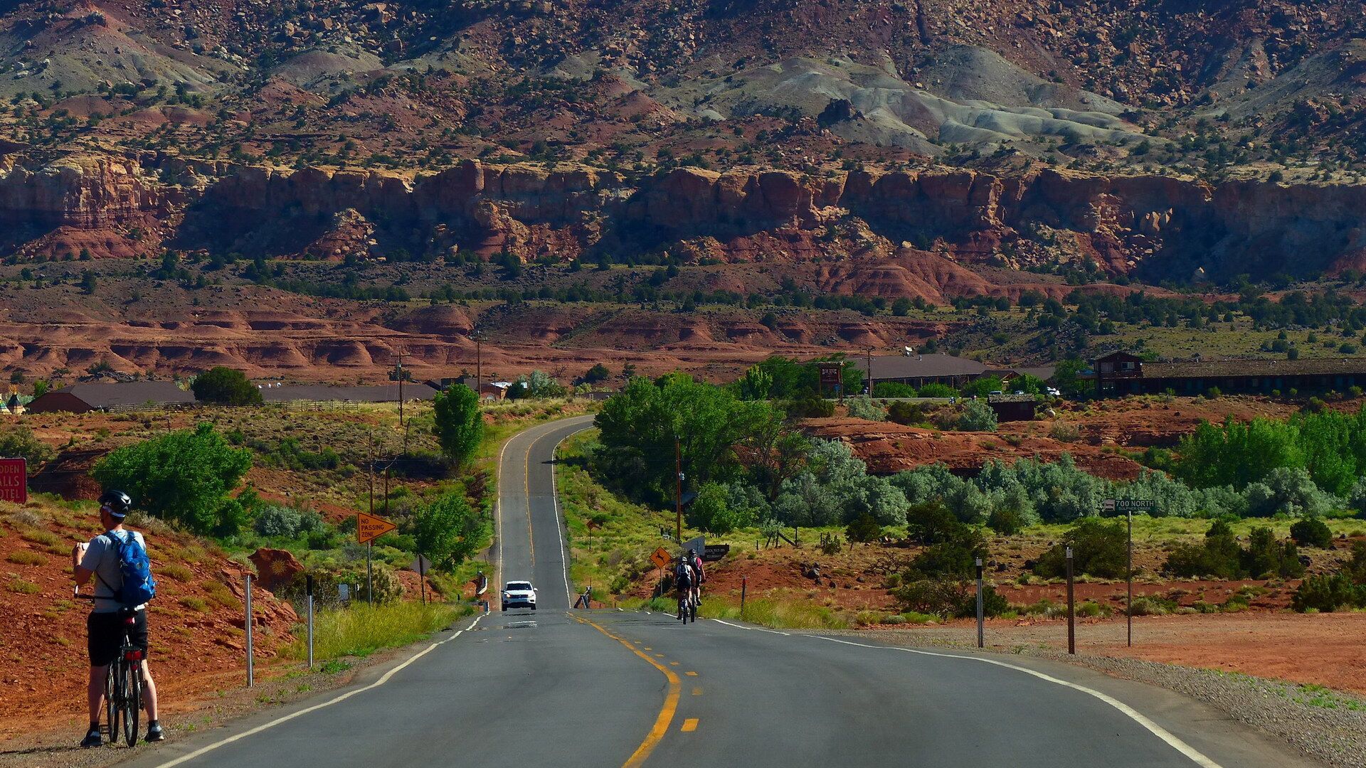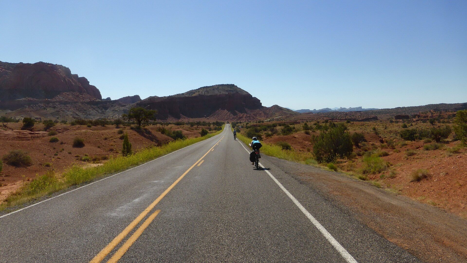 Der spektakuläre und einsame Highway 12 lässt erneut Radlerträume wahr werden! Wir erreichen den grandiosen Capitol Reef National Park, wo wir in dem kleinen Städtchen Torrey unsere Unterkunft beziehen werden. (61 km)