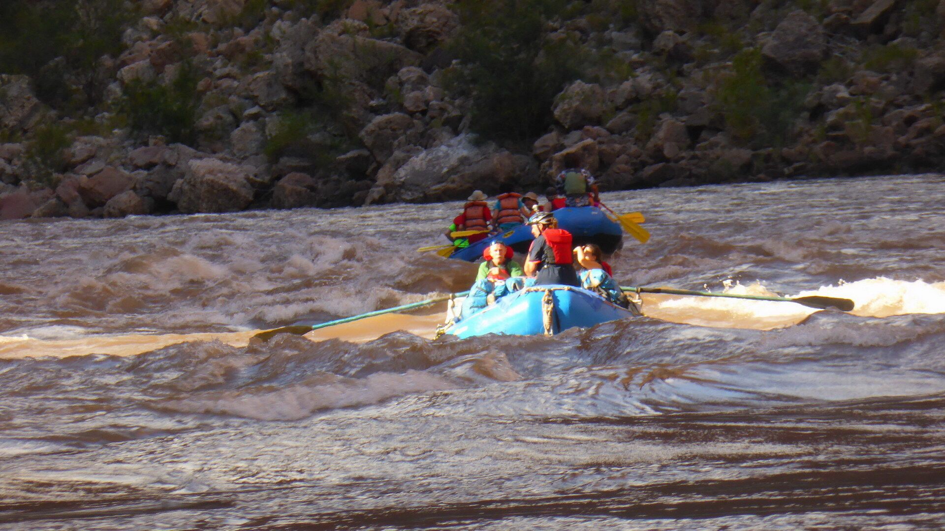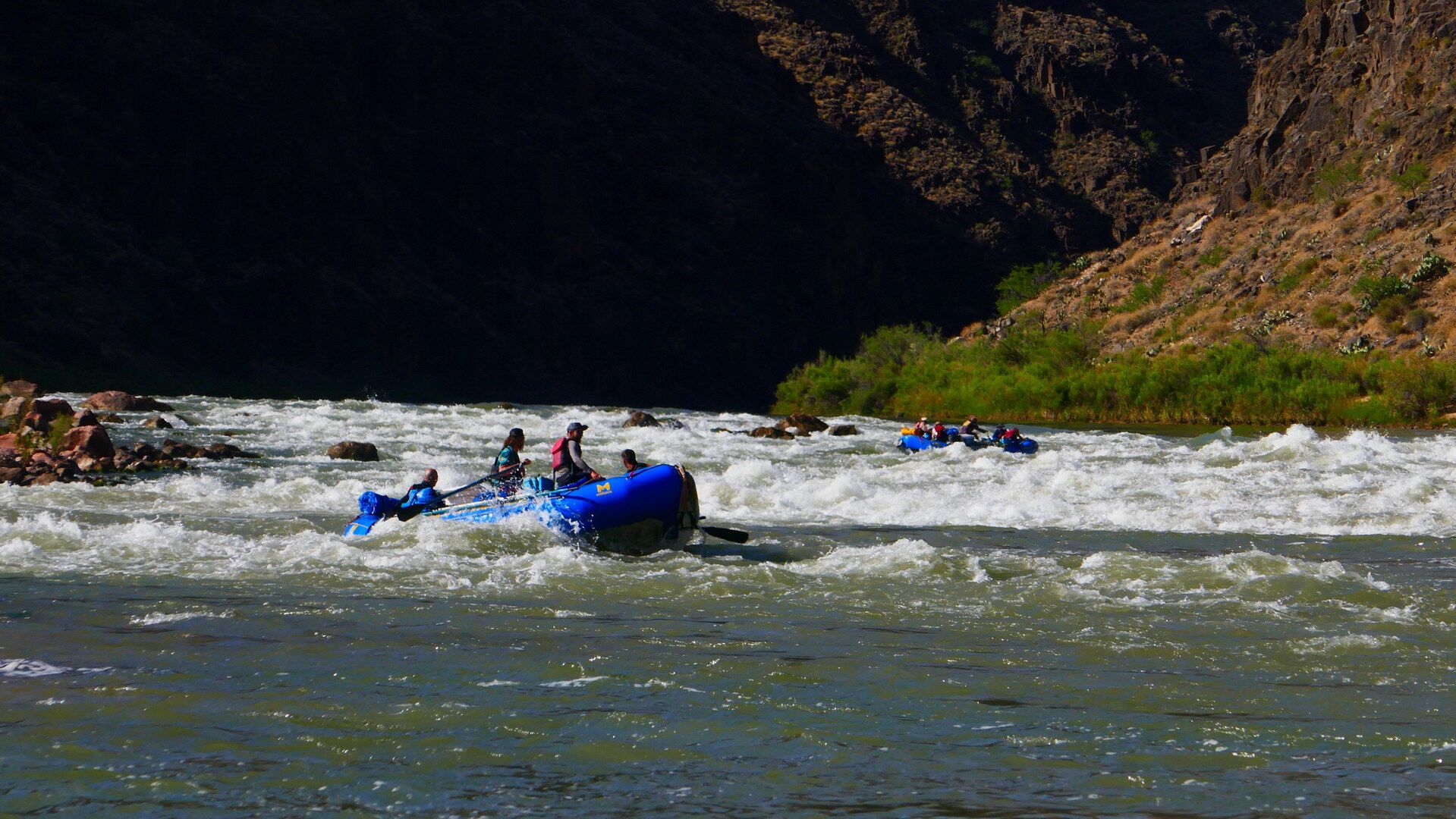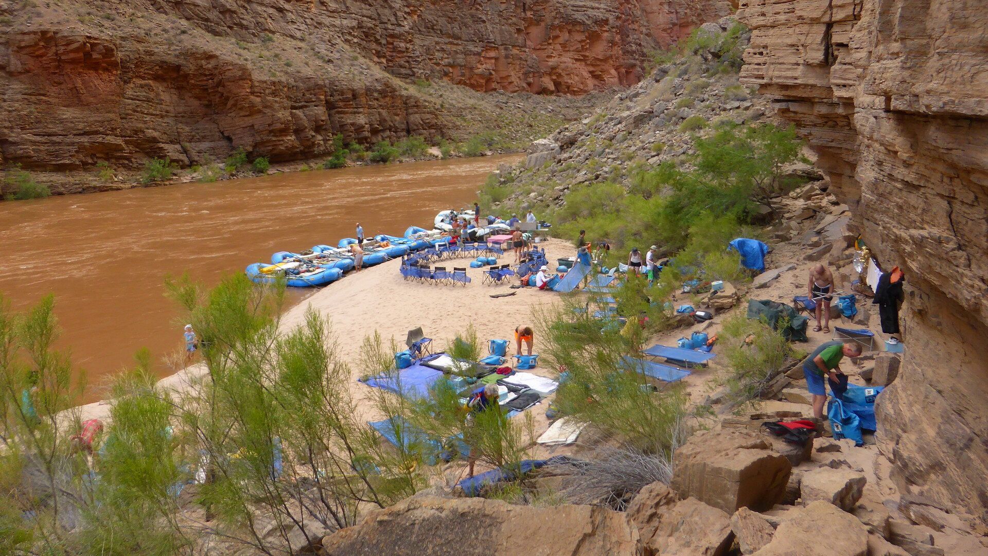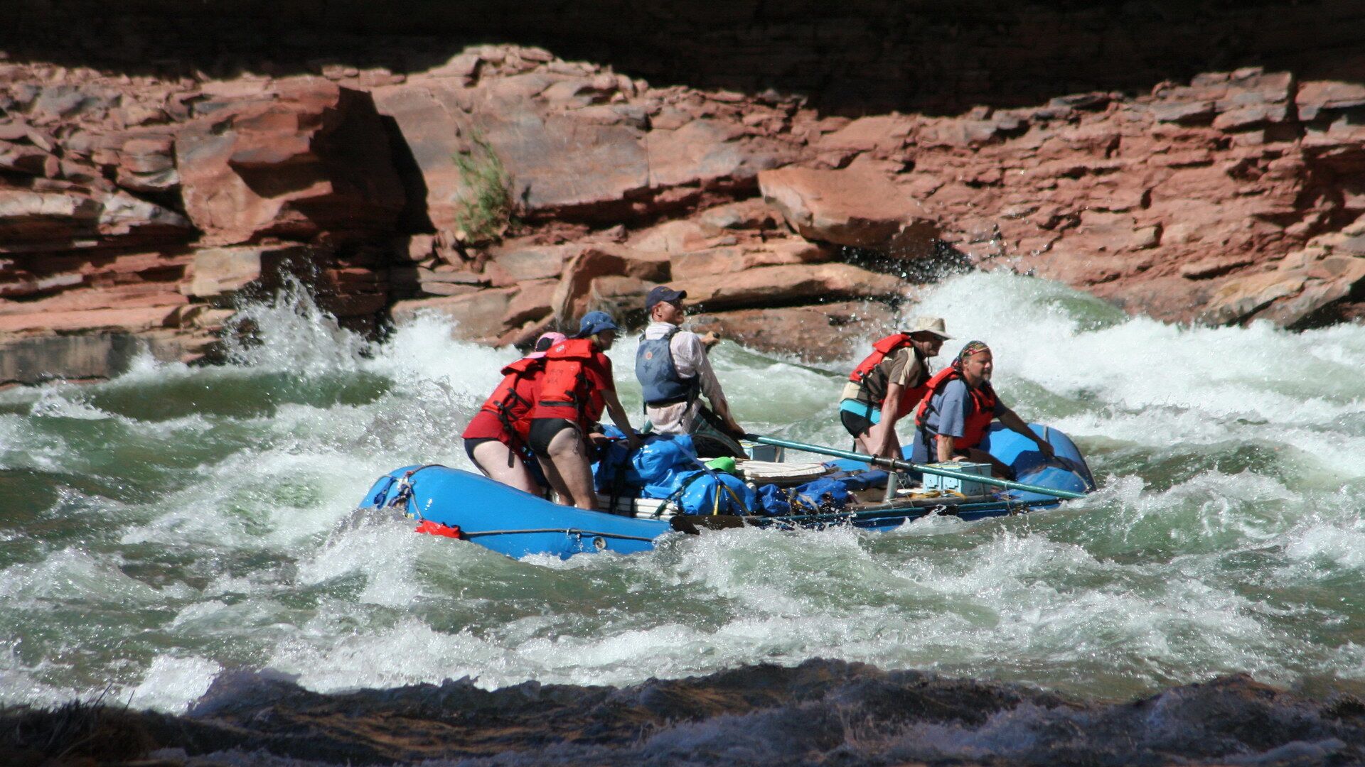Die Rafting-Tour wird von einer professionellen amerikanischen Firma organisiert und durchgeführt. Die mitfahrenden Tourguides sind alles erfahrene Bootsführer, die den Grand Canyon schon unzählige Male mit dem Boot durchfahren haben. Sie sorgen außerdem für unser leibliches Wohl … aus eigener Erfahrung kann ich nur bestätigen, dass dieses abwechslungsreich und sehr schmackhaft ist, ob Lachs, Steaks, Gemüse, Obst oder Selbstgebackenes … es ist alles vorhanden.
