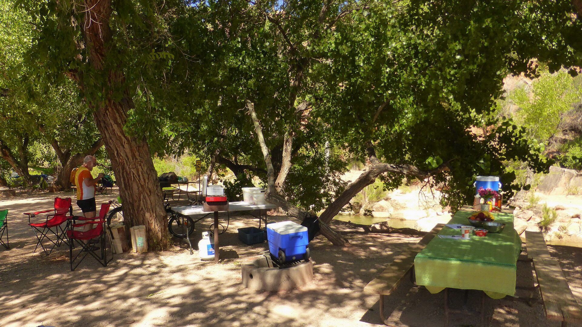 Bevor wir alles verspielt haben, verlassen wir Las Vegas lieber! Wir laden die Räder ein und fahren zum Zion Canyon Nationalpark. Hier - in Springdale - schlagen wir vor einer beeindruckenden Szenerie unser Lager auf.