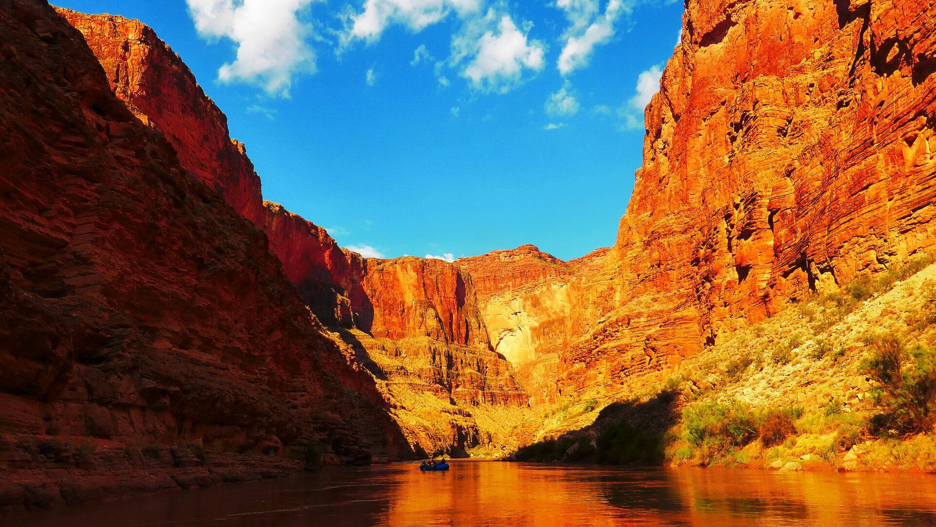 Neben dem Abenteuer auf dem mal ruhigen, mal turbulenteren Wasser an sich werden wir kleine Wanderungen in geheimnisvolle Seitencanyons zu den Ruinen längst vergangener Indianerkulturen unternehmen, erfrischende Bäder in den kühlen Fluten des Colorado genießen und abends unser Lager auf den weißen Sandbänken in den Tiefen des berühmtesten Canyons der Welt aufschlagen. Wer möchte, schläft außerhalb seines Zeltes unter den Sternen in völliger Einsamkeit (abgesehen von unserer kleinen Rafting-Gruppe natürlich).