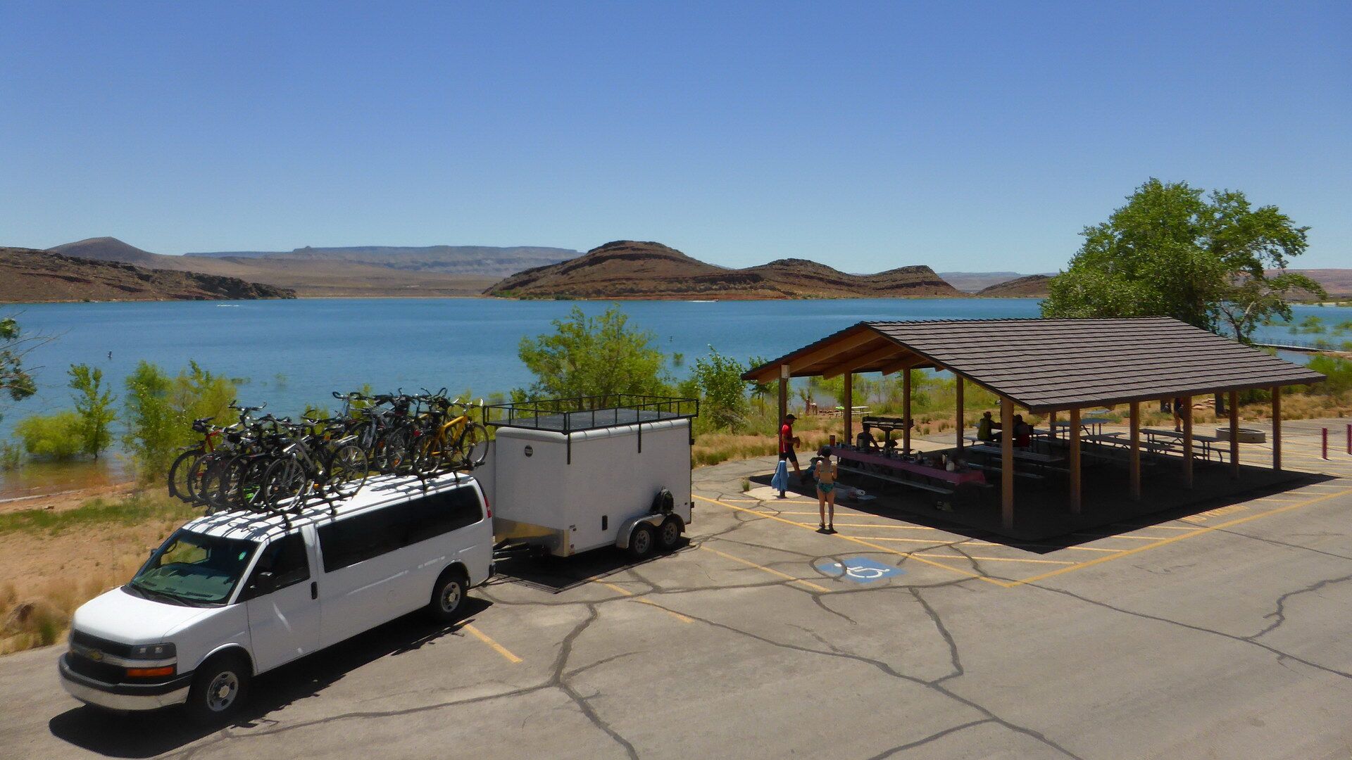 Auf unserem Weg zum Grand Canyon radeln wir entlang des Fremont River durch die semi-aride Landschaft des Wayne County. Die Weite des Landes wird nur durch die Henry Mountains unterbrochen, und wir fühlen uns unwillkürlich in die Zeit der Pioniere versetzt. Übernachten werden wir in der Weltstadt (haha …) Hanksville, irgendwo im Nichts ... (82 km)