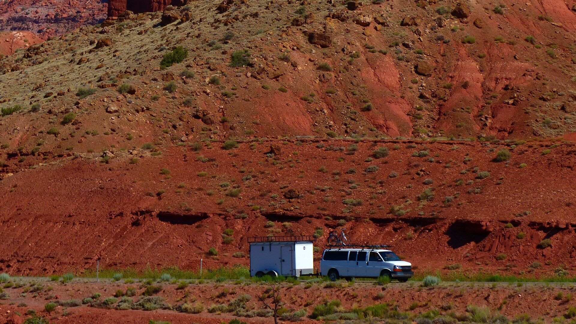 In den drei Wochen durchradeln wir eine Szenerie, die nicht von dieser Welt zu sein scheint, und freuen uns dabei über das warme und trockene Klima. Zu heiß wird es in dieser Jahreszeit an den meisten Tagen noch nicht, bewegen wir uns doch vornehmlich in über 2000 Metern Höhe über die Plateaus des amerikanischen Westens.