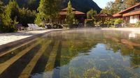 Genussbaden nach langem Radeltag in den heißen Quellen des Thermalhotels in Conaripe