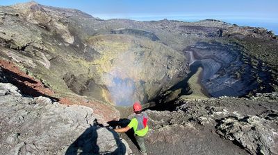 • Blick in den Vulkanschlund ... es dampft!